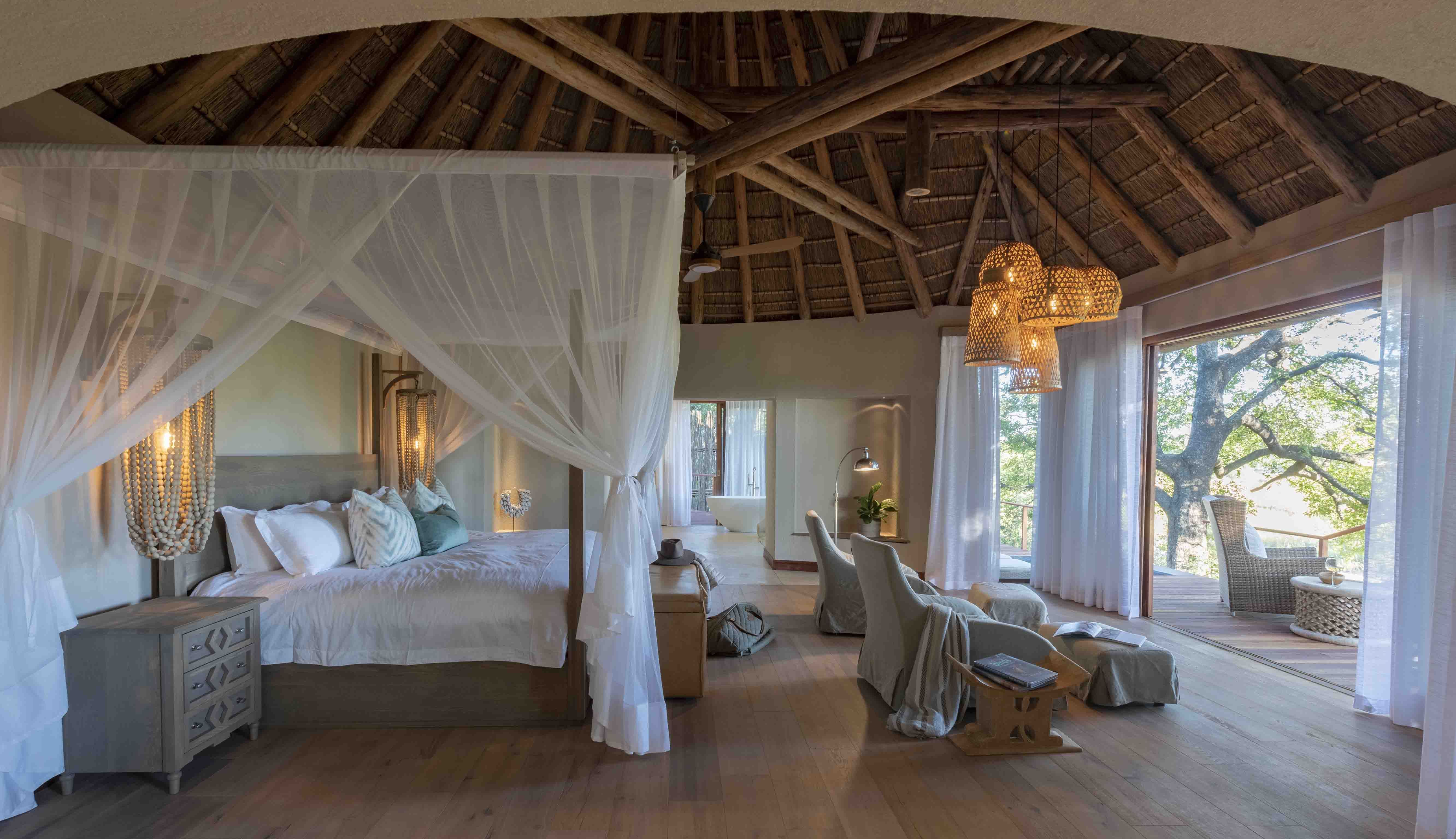 Kruger park and Blyde River Canyon. From the moment you cross the mighty Sabie River and enter Timamoon’s lush hideaway of palms, bamboo, peacocks and endless unspoilt views, you get a sense of the passion that it has taken to bring together this gorgeous boutique lodge. Art and exotic artefacts on display have been collected by the Hammond family from all over the world for the past 30 years and give each individual villa an unique eclectic mood. The merging styles from Bali, Morocco, India and Zanzibar are perfectly matched, enhancing the moorish feel that is Timamoon