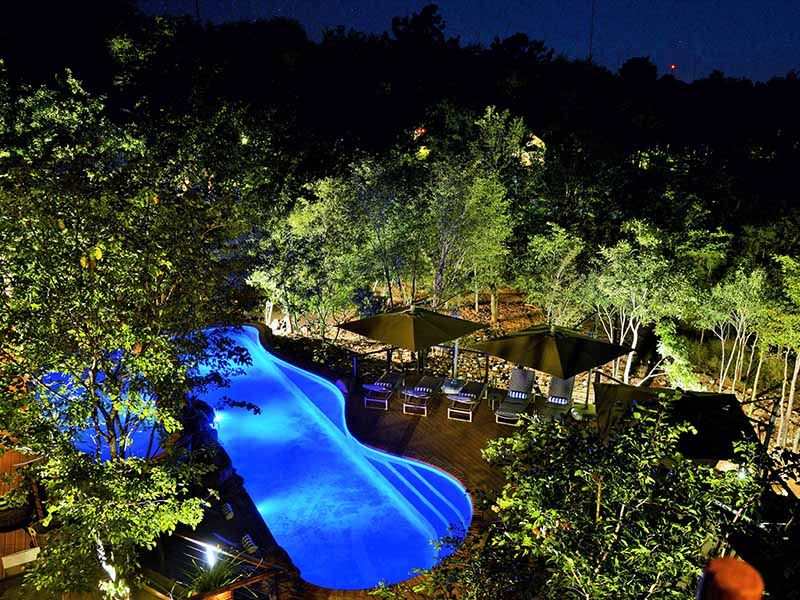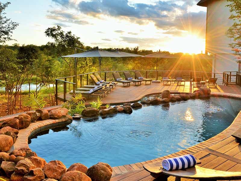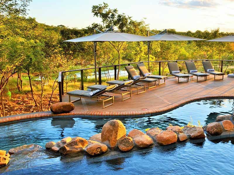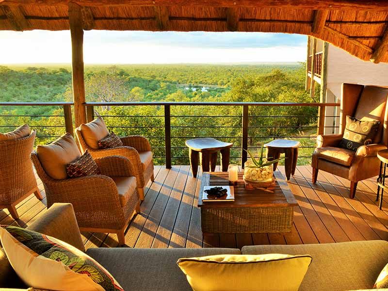 Designed to give the impression of a vast open-plan tree house, the lodge is built on seven levels rising high above the pristine bushveld. All rooms boast the highest level of sophistication and comfort. Each has its own balcony overlooking the national park.