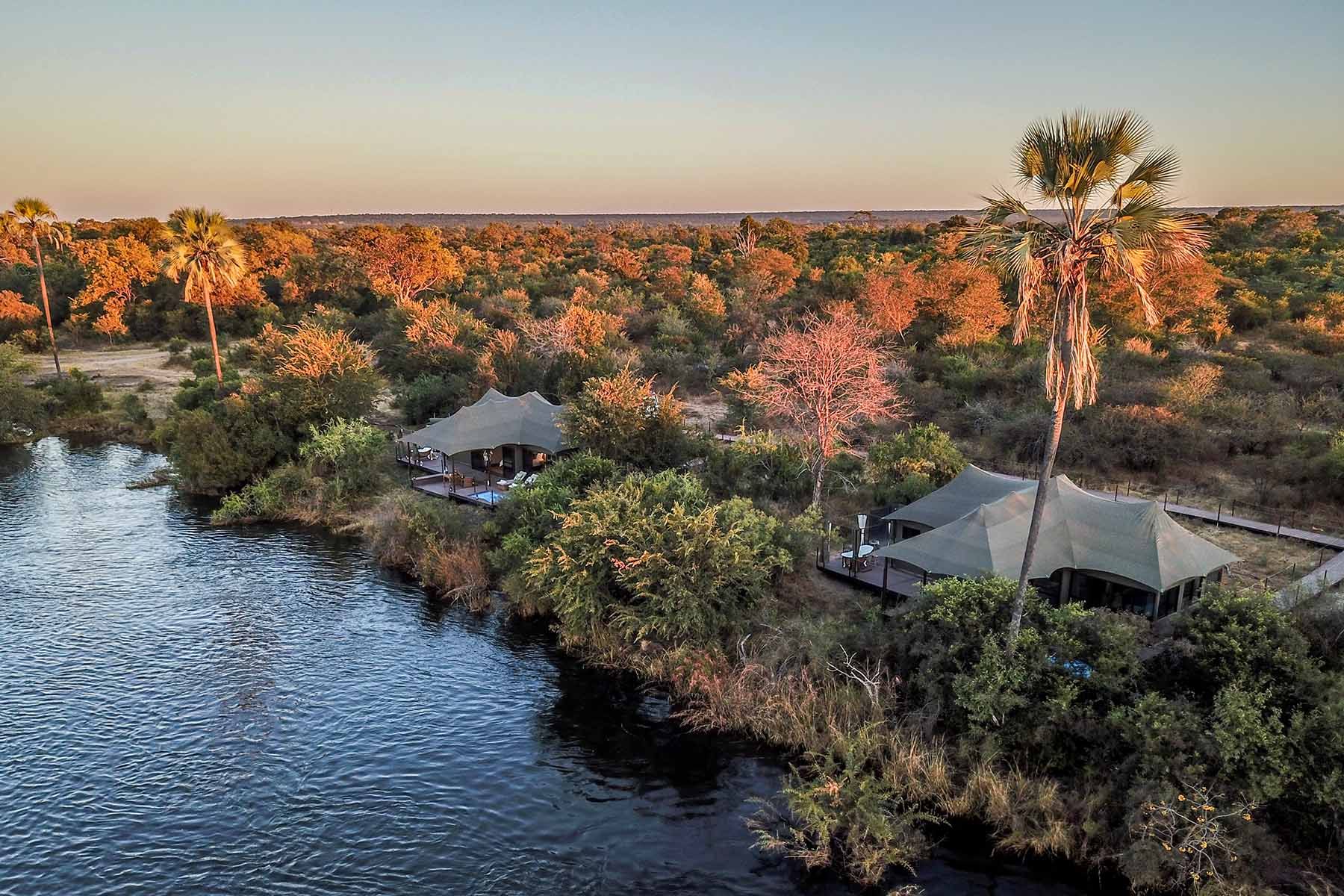The main lodge area has 360 degree views, North facing onto the Zambezi & South facing onto a water hole. A 7 kilometre stretch of river flows between the camp and the town of Victoria Falls, making Old Drift Lodge the closest lodge within the National Park to Victoria Falls.