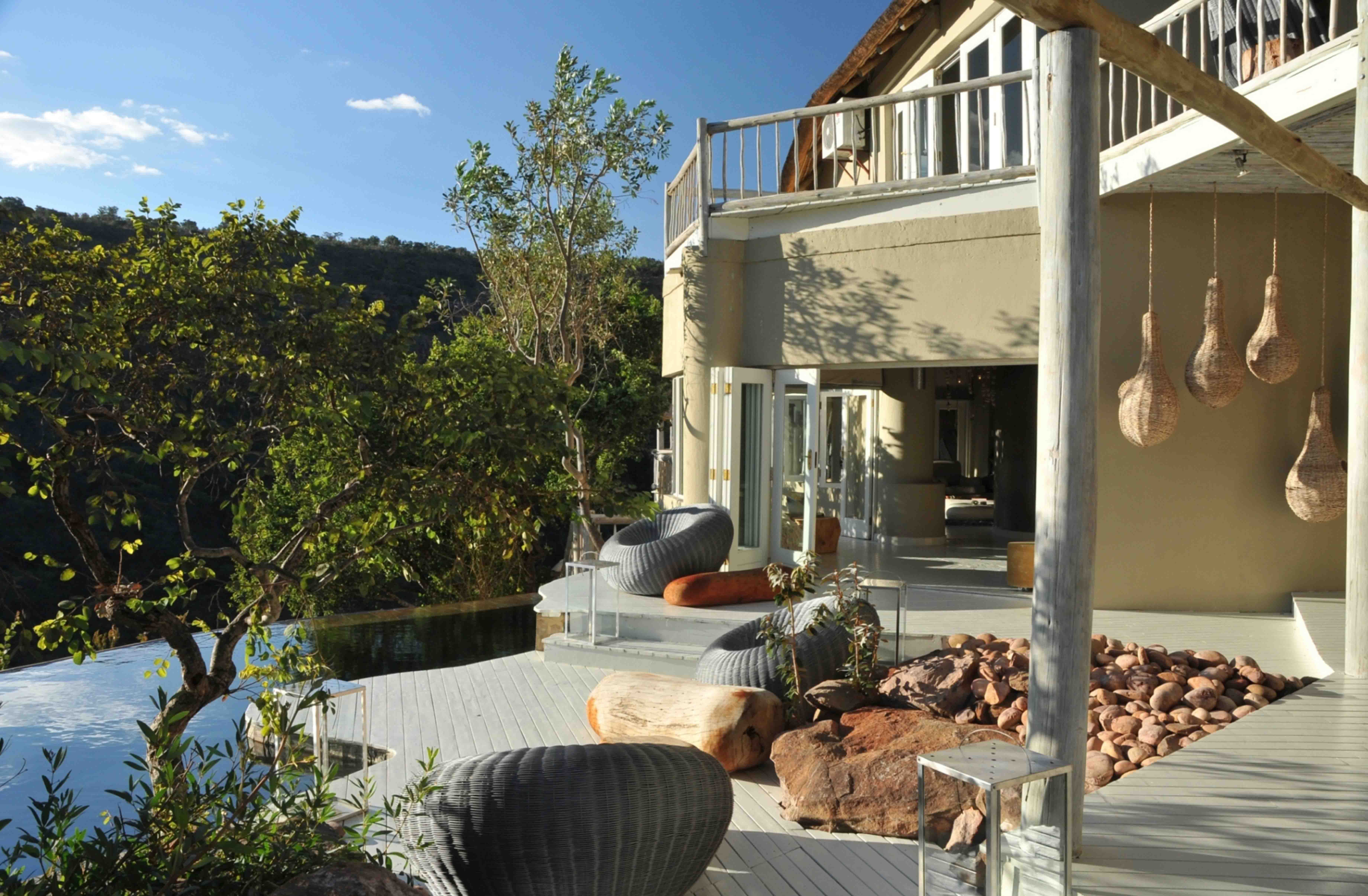 Luxury suites overlooking the flowing Sterkstroom River, each one perched on the edge of the cliff, with a private deck and plunge pool, the ideal opportunity to view game from the privacy of their suites. Indoor and outdoor showers and bathrooms with breath-taking views, complement the seclusion of these spectacularly positioned suites.