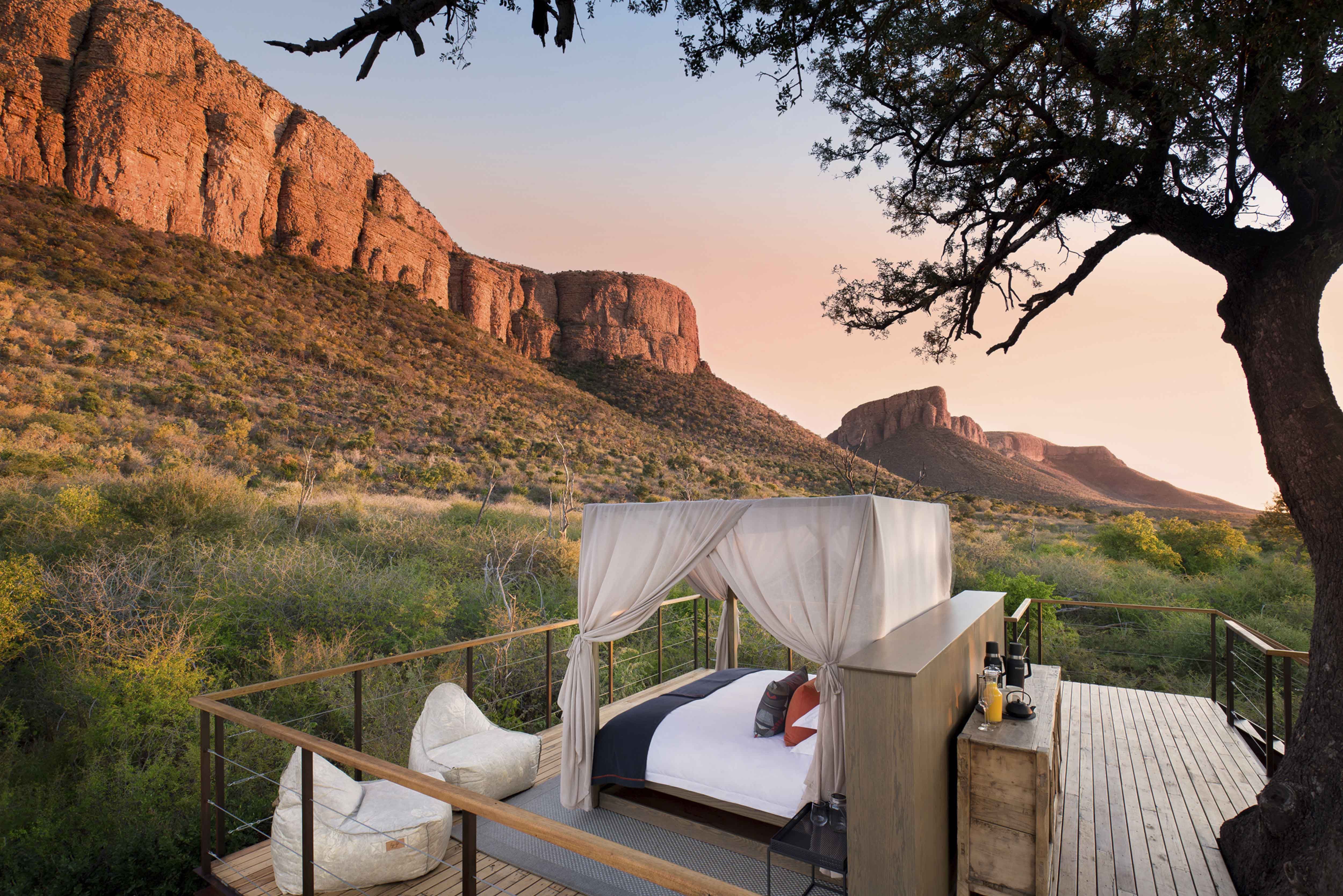 Its mountains and plains, fed by winding rivers and home to wild herds, are much like they were aeons ago. As the safari vehicle climbs up through the Waterberg range to Marataba Trails Lodge, set in this untainted wilderness, you will forget any worries behind.
