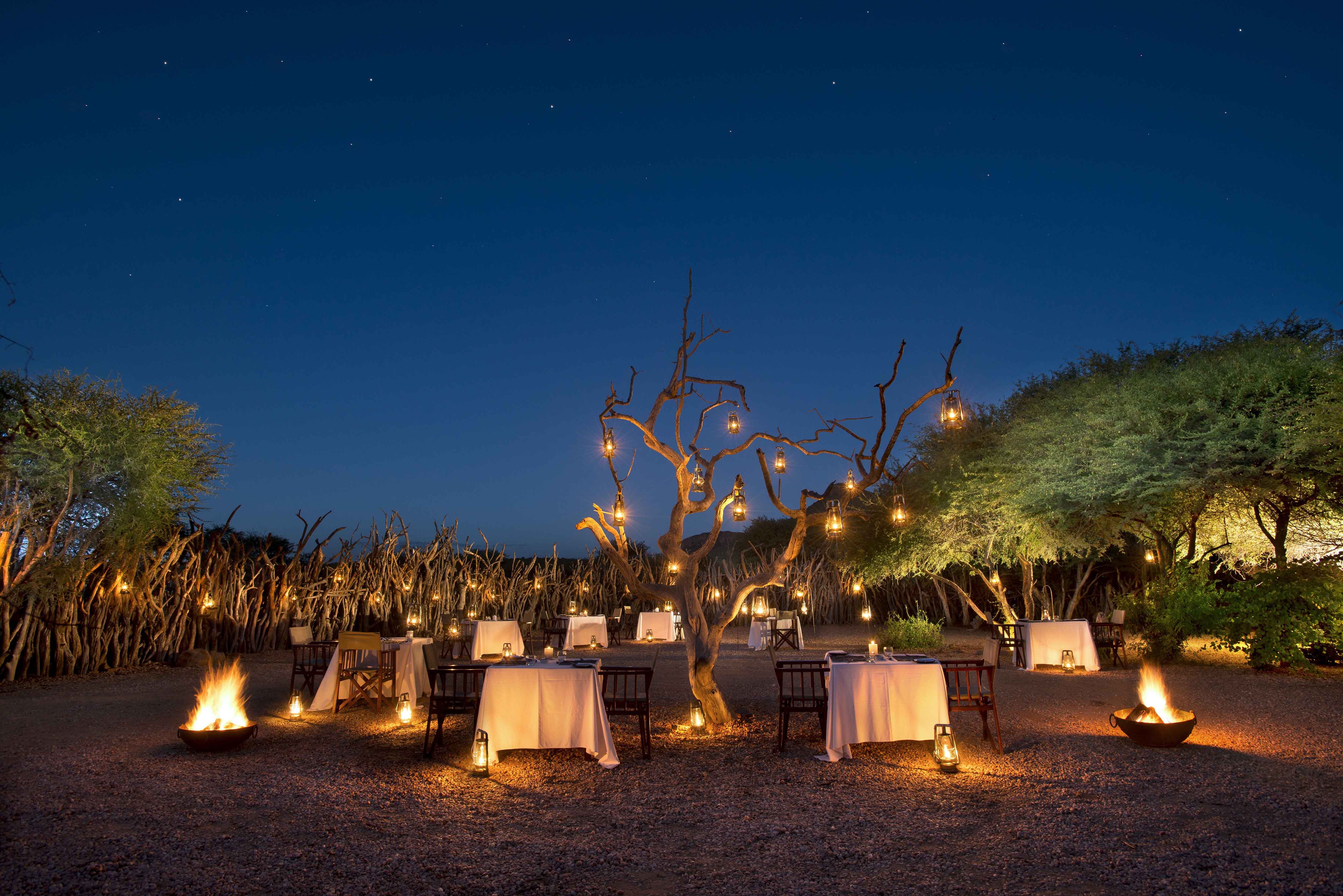 The lodge offers a dramatic fusion of African and Western cuisine, with the addition of an extensive wine cellar that any wine lover would appreciate.